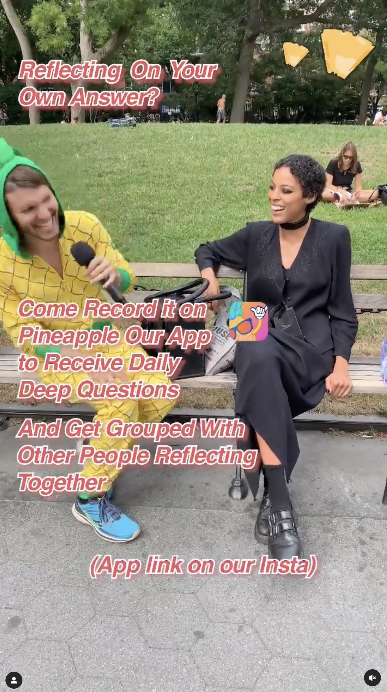 Pineapple is a way to have an honest face-to-face conversation with four strangers. It pairs you into a room with four other people to discuss topics and answer questions. There’s a feed of conversation starters, and as soon as you answer the question, your answer becomes a part of a group of five total strangers. Now, the five of you are on a journey to discuss and answer more questions together. All answers are recorded as selfie videos of you talking to the camera. It created a level of interaction and learning from strangers that is hard to come by in our world, which is more and more devoid of third places.
